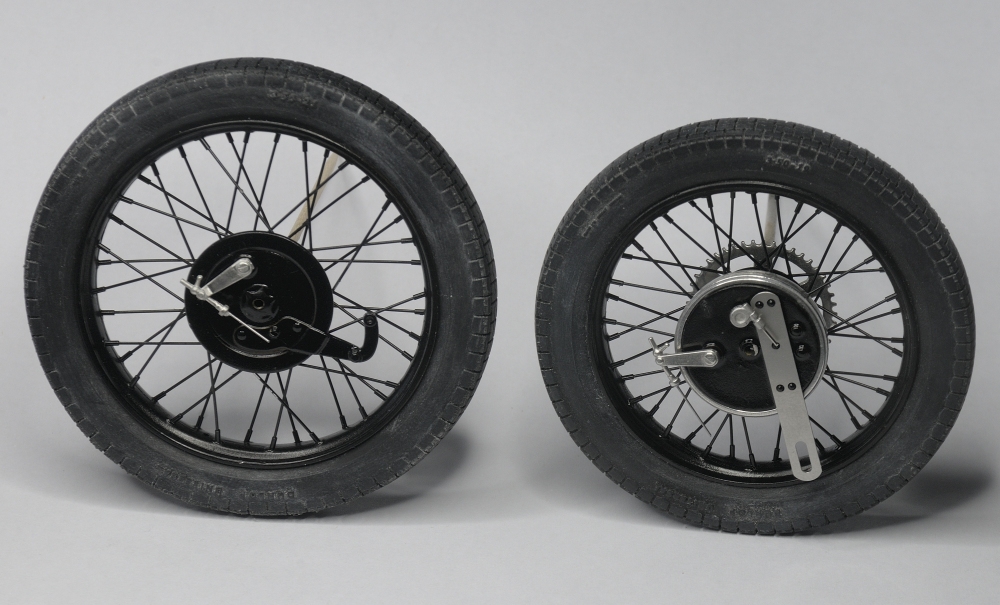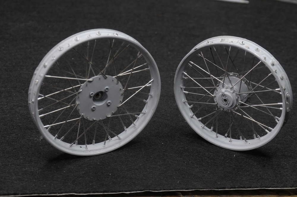 Shame i couldnt leave the wheel bare metal but the Brough had black painted wheels so here they are with an etch primer on the rims.