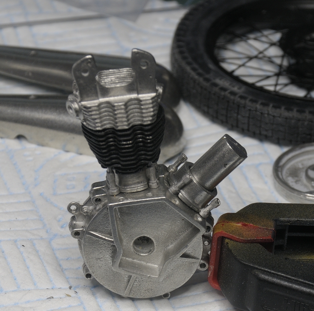 So on to the engine. again this was semi assembled so i stripped it down to its componant parts and cleaned them up, the frame had been brush painted, as had the tank.